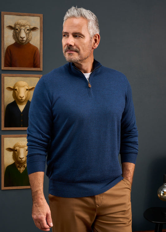 Jersey simulado de lana merino con cremallera de 1/4 en índigo de Barton - Corte estándar