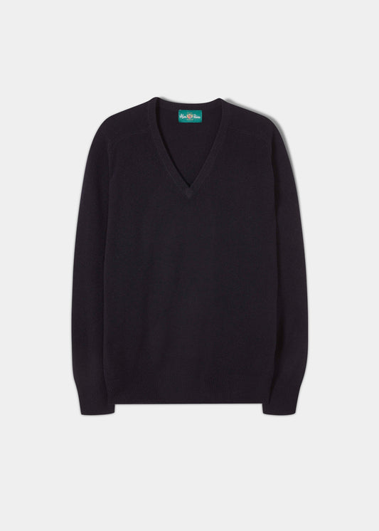 Jersey de lana de cordero para hombre Dorset en azul marino - Corte clásico