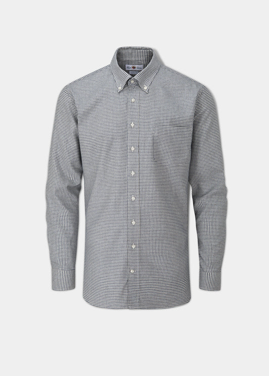 Camisa de hombre de algodón con botones y estampado de cuadros azules pequeños - Corte regular.