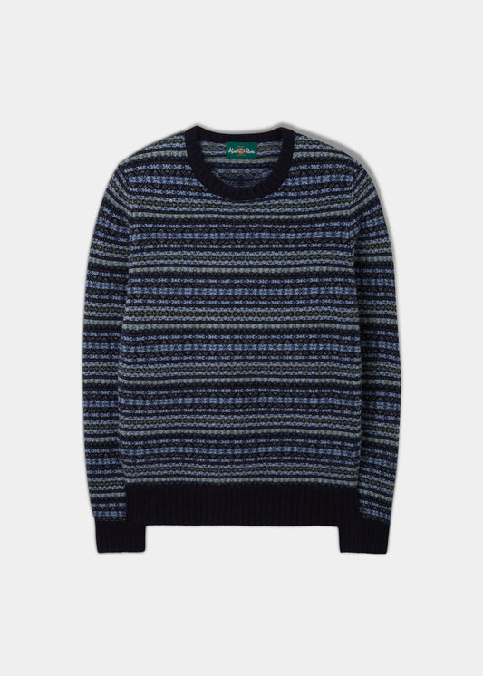 Towthorpe Jersey Fairisle Azul marino de lana de cordero para hombre - Ajuste regular