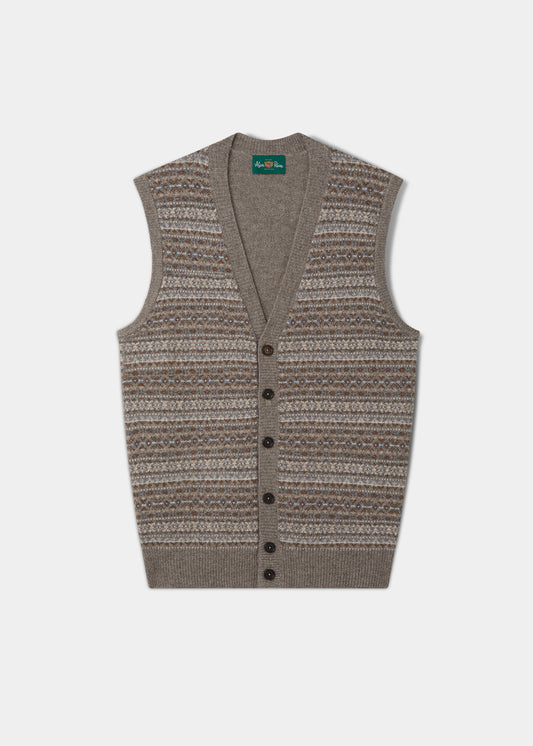 Chaleco Maywick de punto Fair Isle de lana de cordero para hombre en color topillo