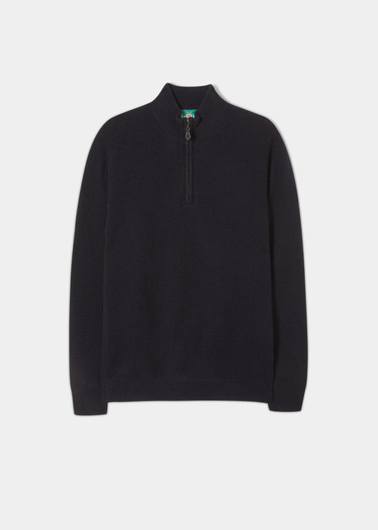 Jersey de lana de cordero con cremallera de 1/4 Sutherland en azul marino - Corte estándar