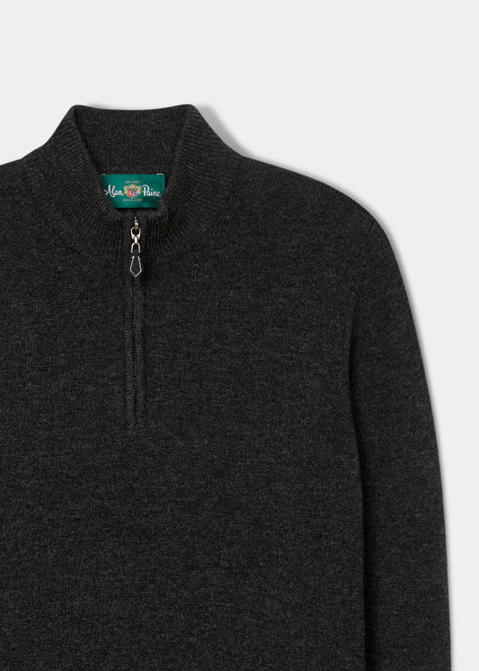 Jersey de lana de cordero con cremallera de 1/4 Sutherland en color carbón - Corte estándar