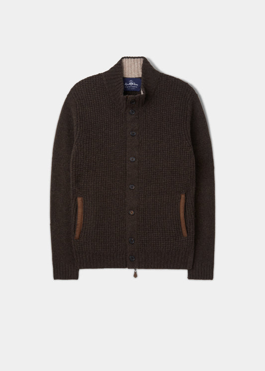 Chaqueta de lana para hombre Duchally con punto tipo gofre, color cacao