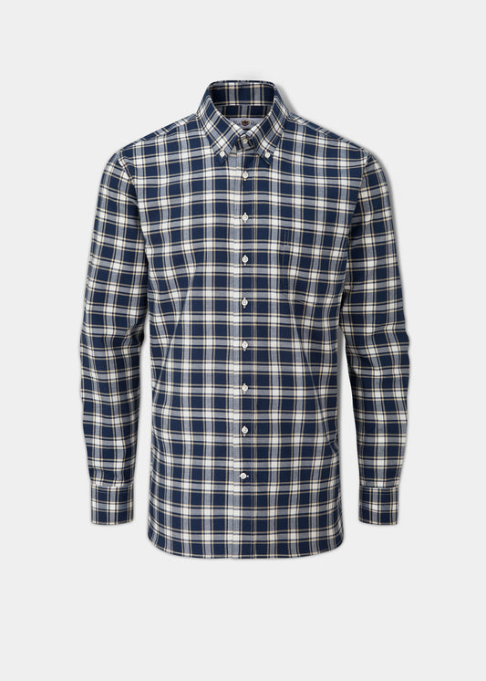 Camisa de Hombre de Algodón con Botones y Cuadros Azules - Corte Regular