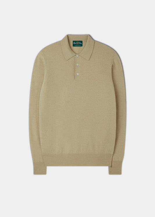 Polo Geelong de lana de cordero de manga larga para hombre en color natural - Corte estándar