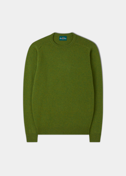 Jersey de hombre con cuello redondo y lana de cordero en color musgo - Corte regular