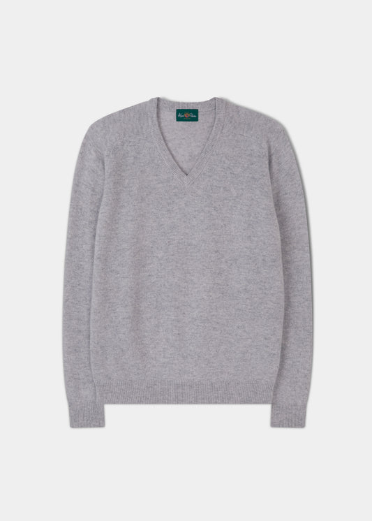 Jersey para Hombre con Cuello en V de Lana de Cordero en Mezcla de Gris Claro - Corte Regular