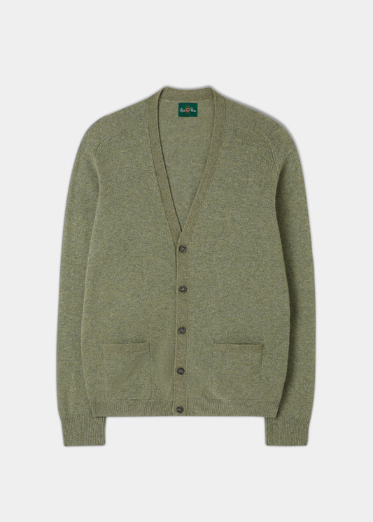 Cárdigan de hombre de lana de cordero en color Verde huerto – Corte clásico