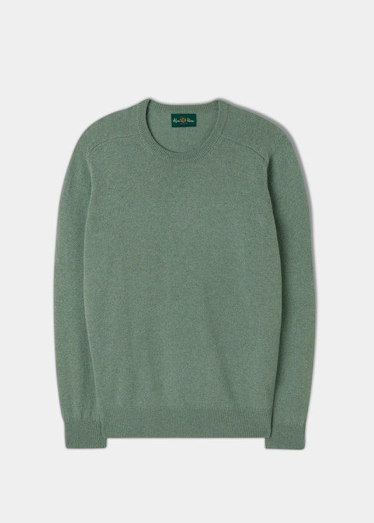 Jersey de cuello redondo de lana de cordero para hombre en verde Munsell - Corte clásico