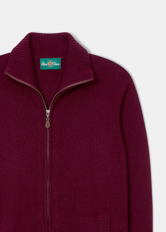 Jersey Ballater Lambswool con cremallera en Burdeos - Corte regular