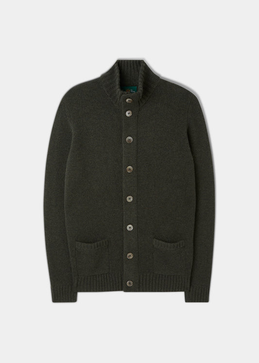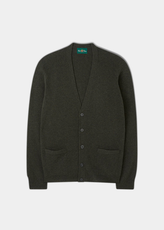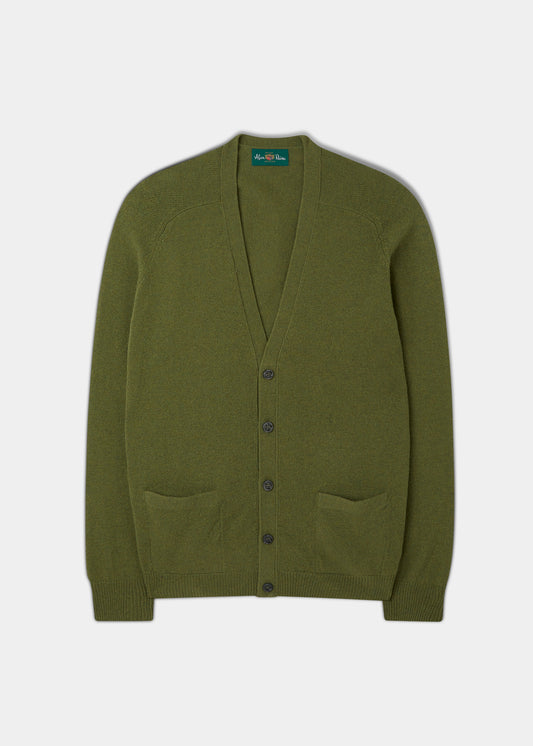 Cárdigan de lana de cordero Cornwall en Judía verde - Corte clásico