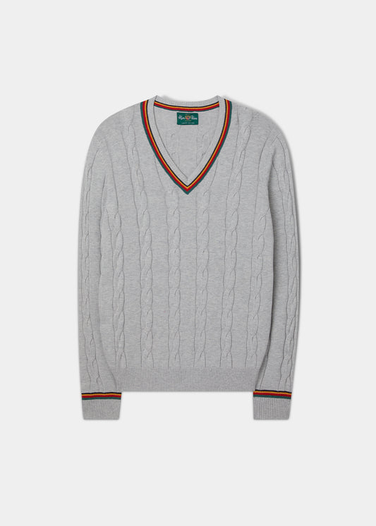 Jersey color paloma con cuello en V y punto de ochos de cachemir y algodón de Sandford