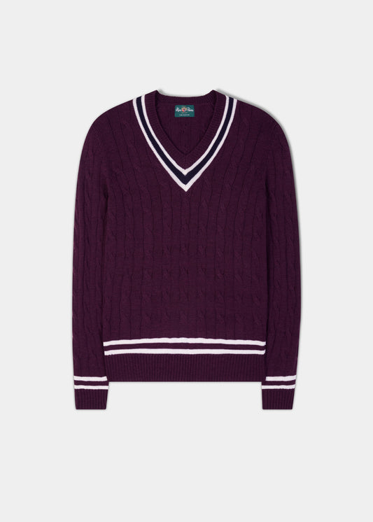 Grafton Jersey de críquet de lana merino en color uva negra para hombre - Corte estándar
