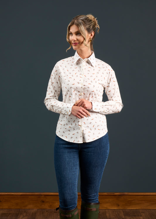 Camisa de algodón estampada para mujer Lawen - Diseño de faisán