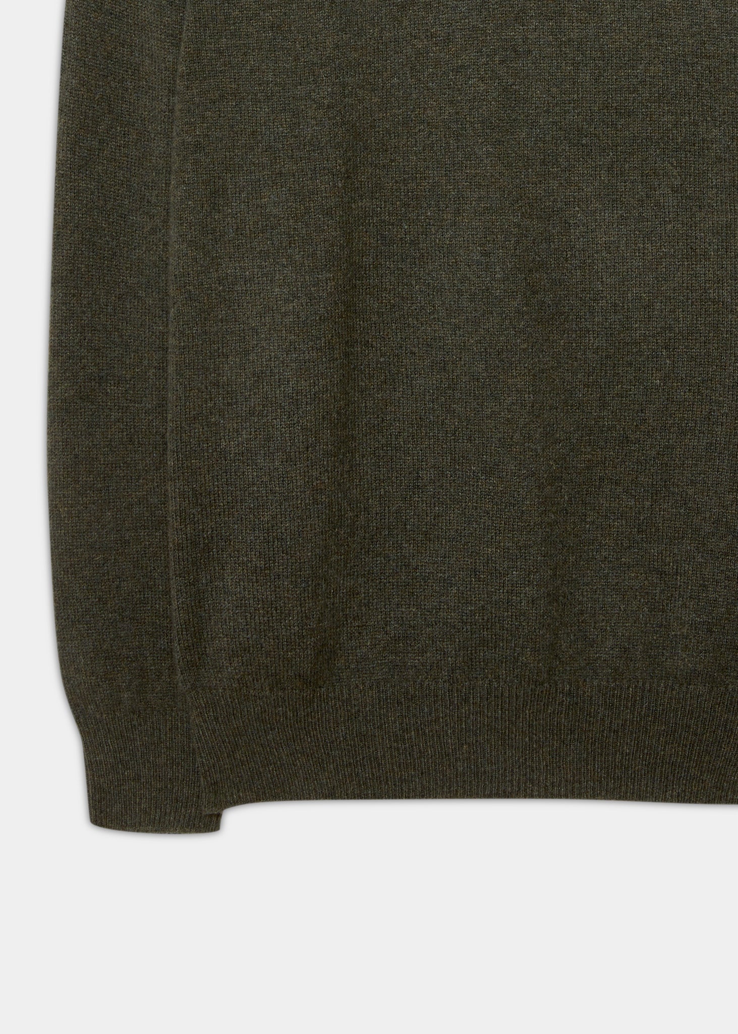 El suéter de cuello redondo es una pieza versátil, ideal para usar como capa o como prenda diaria. Confeccionado con lana de cordero 100% súper suave, hilada por el fabricante de hilos más antiguo de Europa, Z. Hinchliffe, fundado en Yorkshire, Inglaterra, hace 250 años. Presenta una estructura de hombros tipo silla de montar, con un corte generoso en la cintura, diseñado con un ajuste relajado, más tradicional y cómodo.