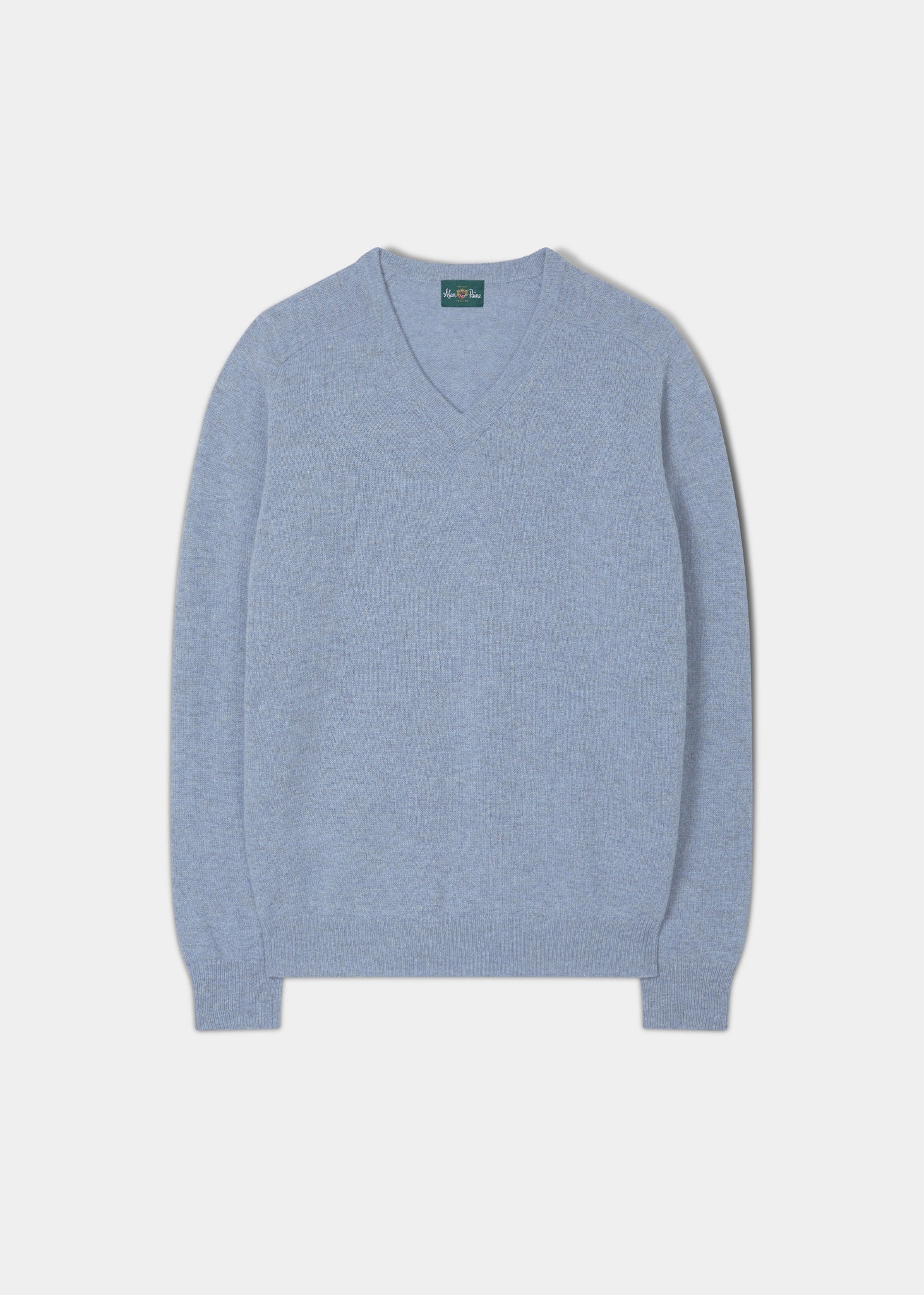 Jersey de hombre en lana de cordero con cuello en V en Paradise Blue - Regular Fit