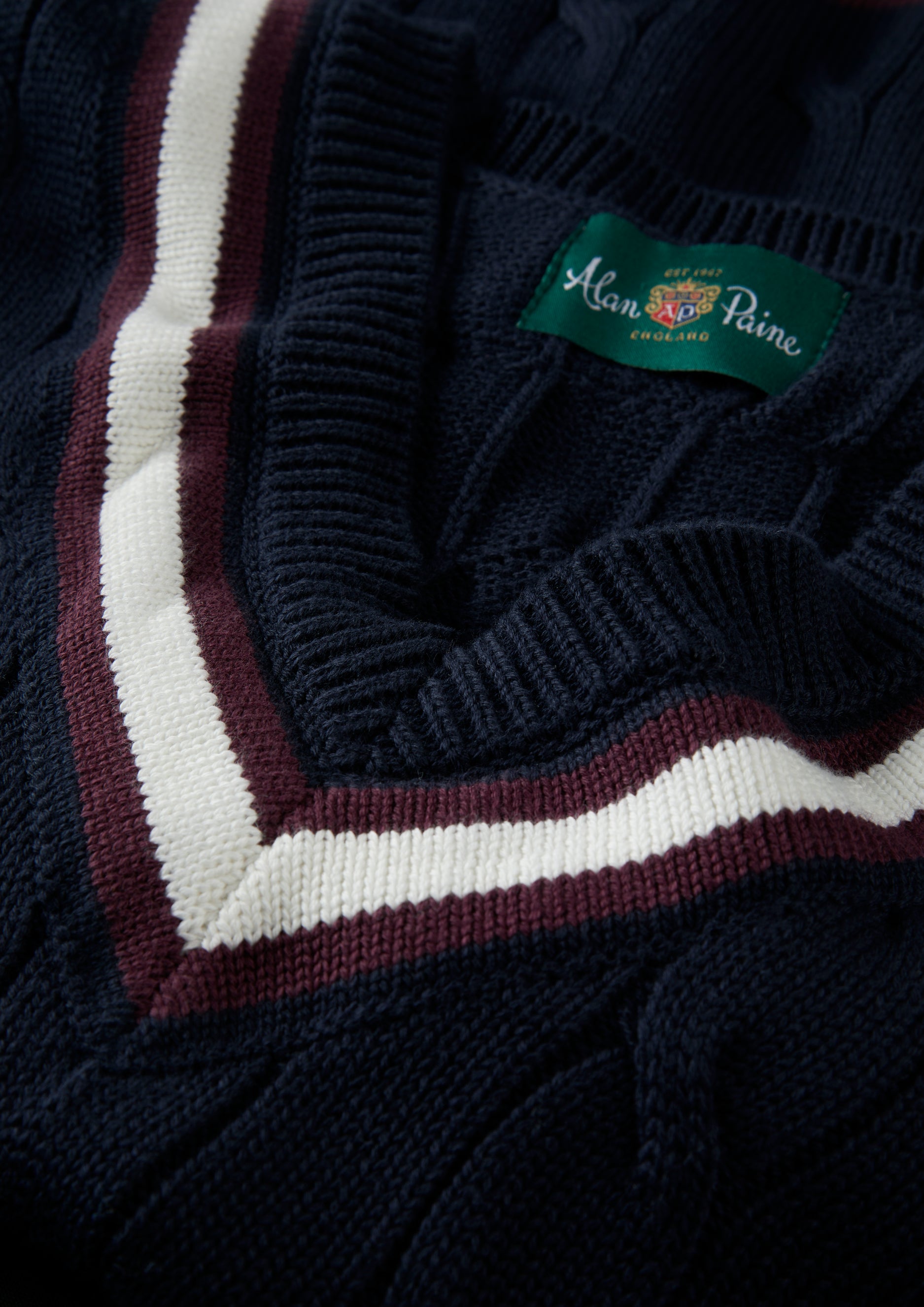 Jersey de Cricket Sandridge con Punto Trenzado en Azul Marino Oscuro y Grosella Negra