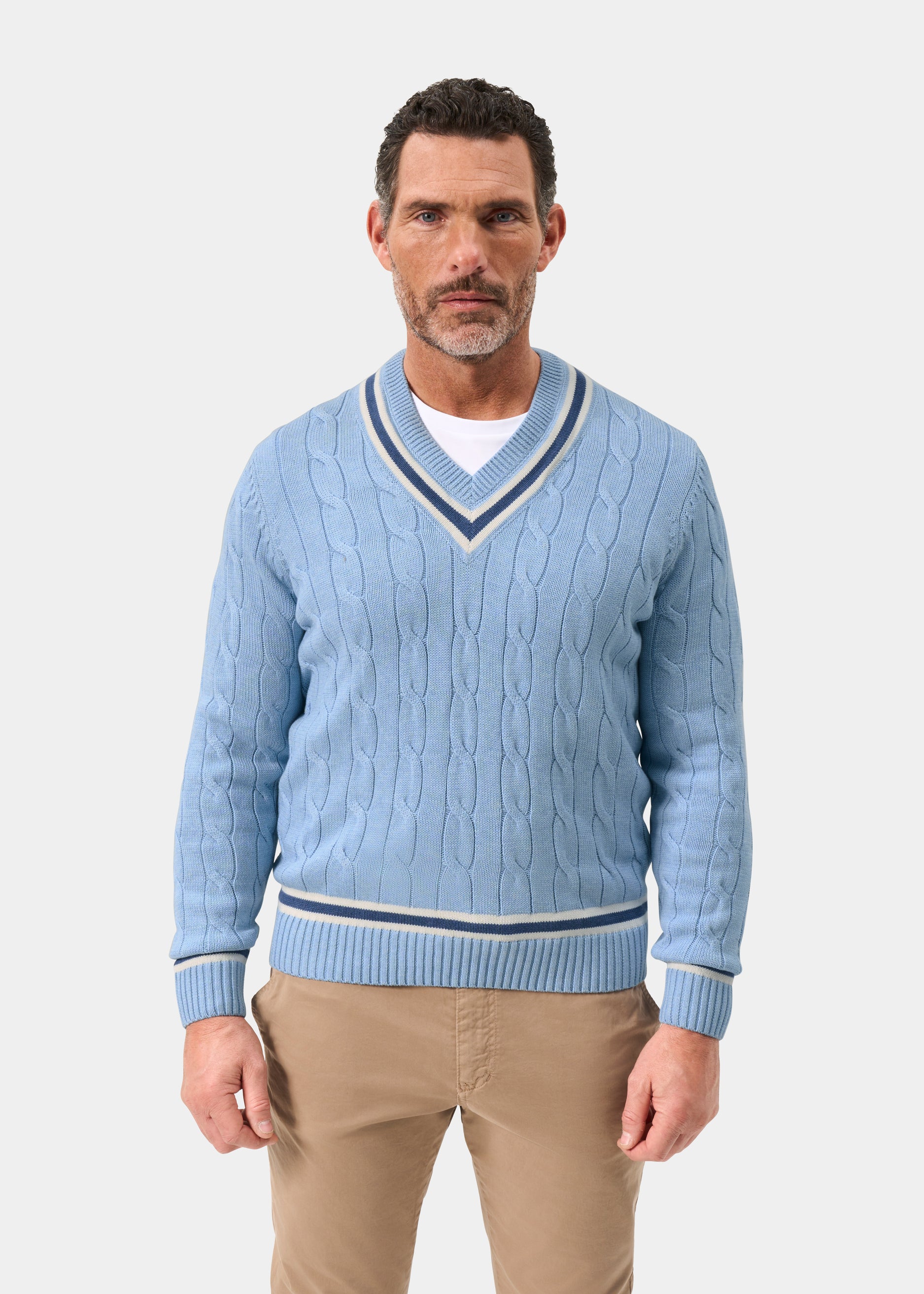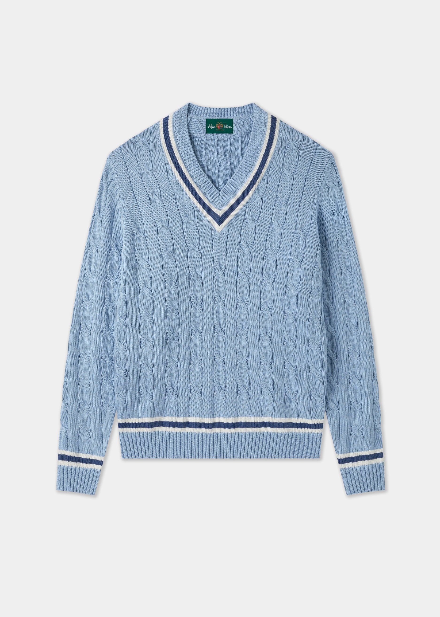 Jersey de Cricket con Trenzas Sandridge en Azul Acero y Crudo